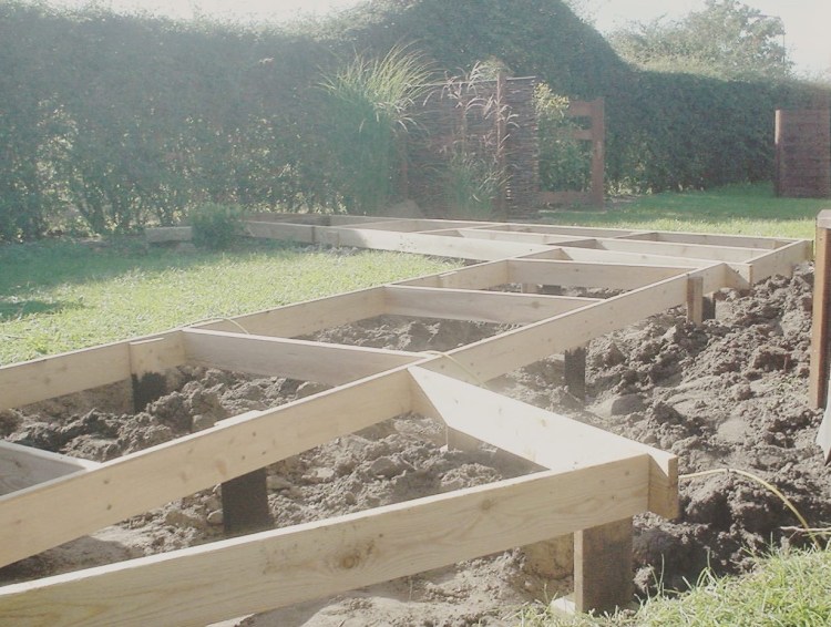 Så i år laver Dieter gangbroer med ramper, og det område vi kalder Skakbrættet til vores urter.