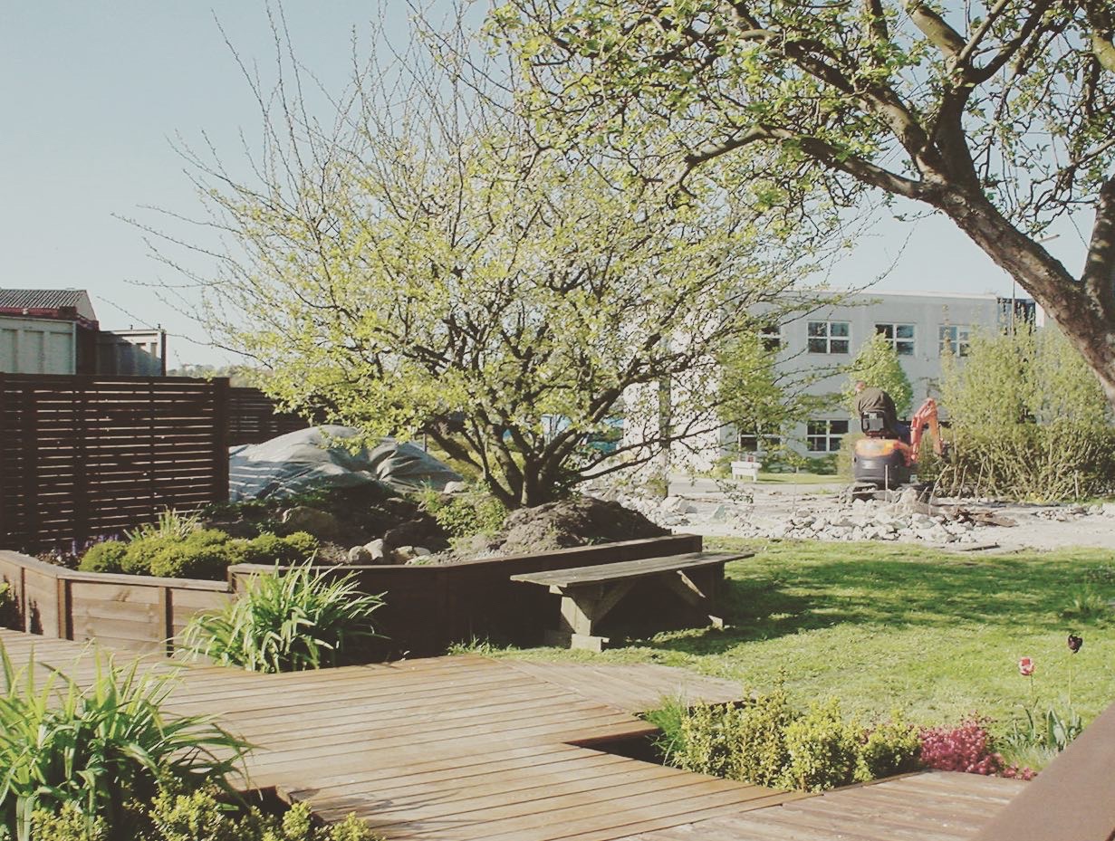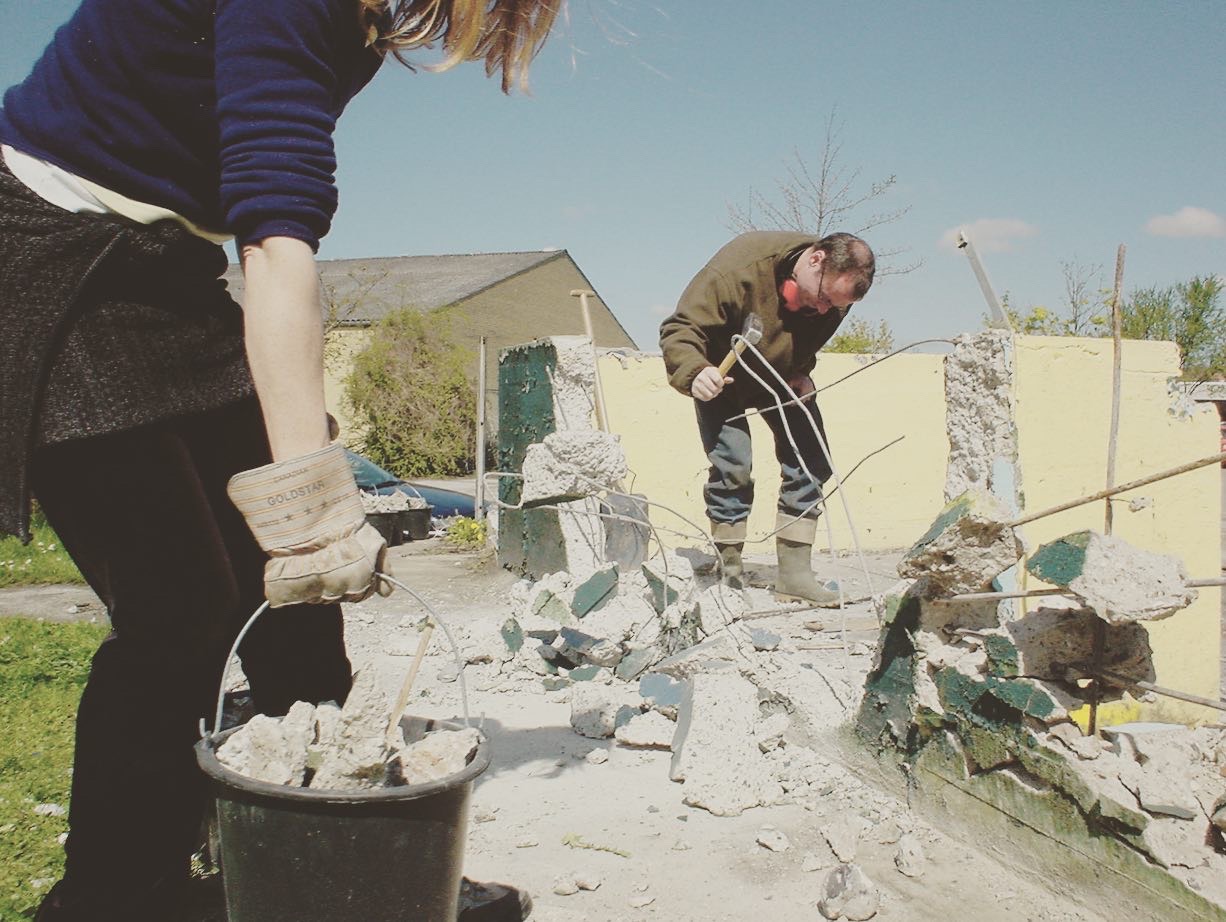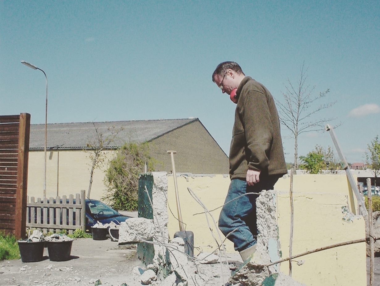 I foråret 2005, nærmere bestem i maj, er vi tilbage i haven, og jublen over at vores gamle hus er væk, er her et halvt års tid efter nedrivningen, stadig stor — men så alligevel lige knap så stor, da vi i oktober rev huset ned, gik det for alvor op for os, hvor meget beton der var, ikke bare som terrasse og under huset, men i ca en meter op i flere af væggene.