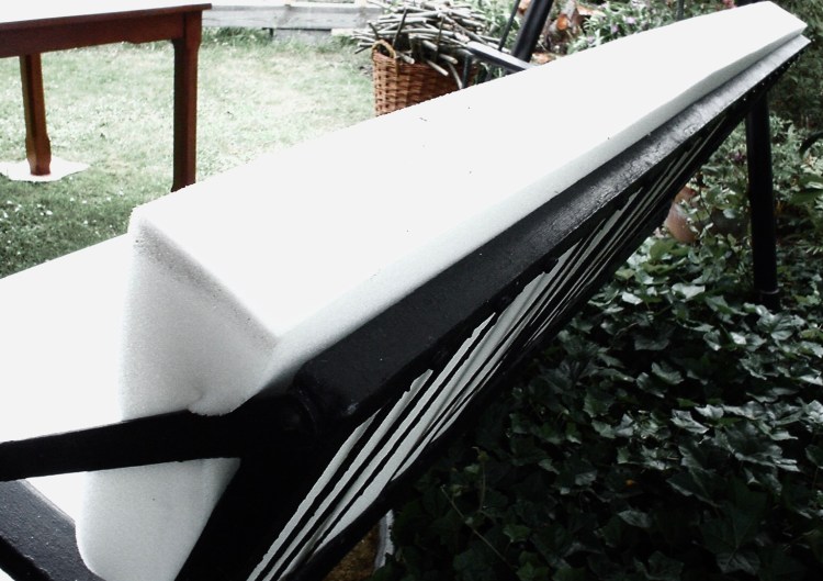 Imens tager jeg mig kærligt af vores sofagynge, som stod fastankret i beton, da vi købte huset.